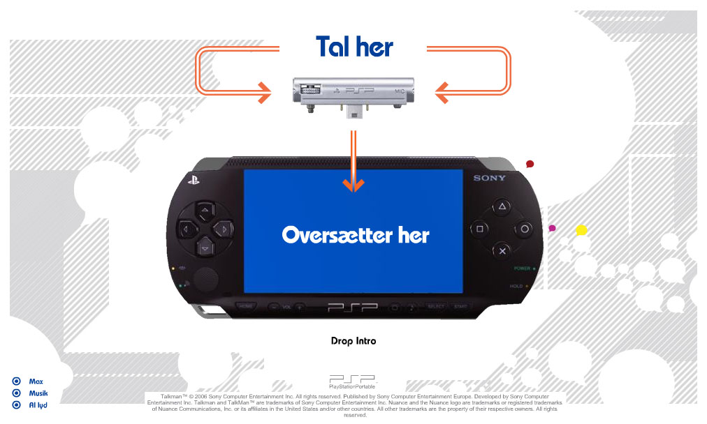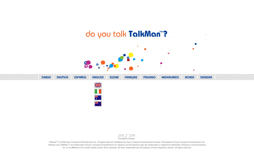 The TalkMan product is voice-activated translation software designed for the Sony PSP games console, that operates in eight languages. It was launched in the US and UK markets in 2008 as one of the first truly novel uses for the new console technology.