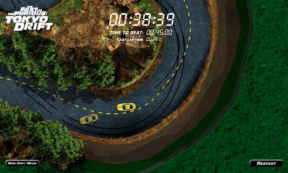 The game is live at the link below, but Universal chose to disable the skidding and physics in the first 3 levels, so make sure you switch to "Drift Mode" at the first opportunity!