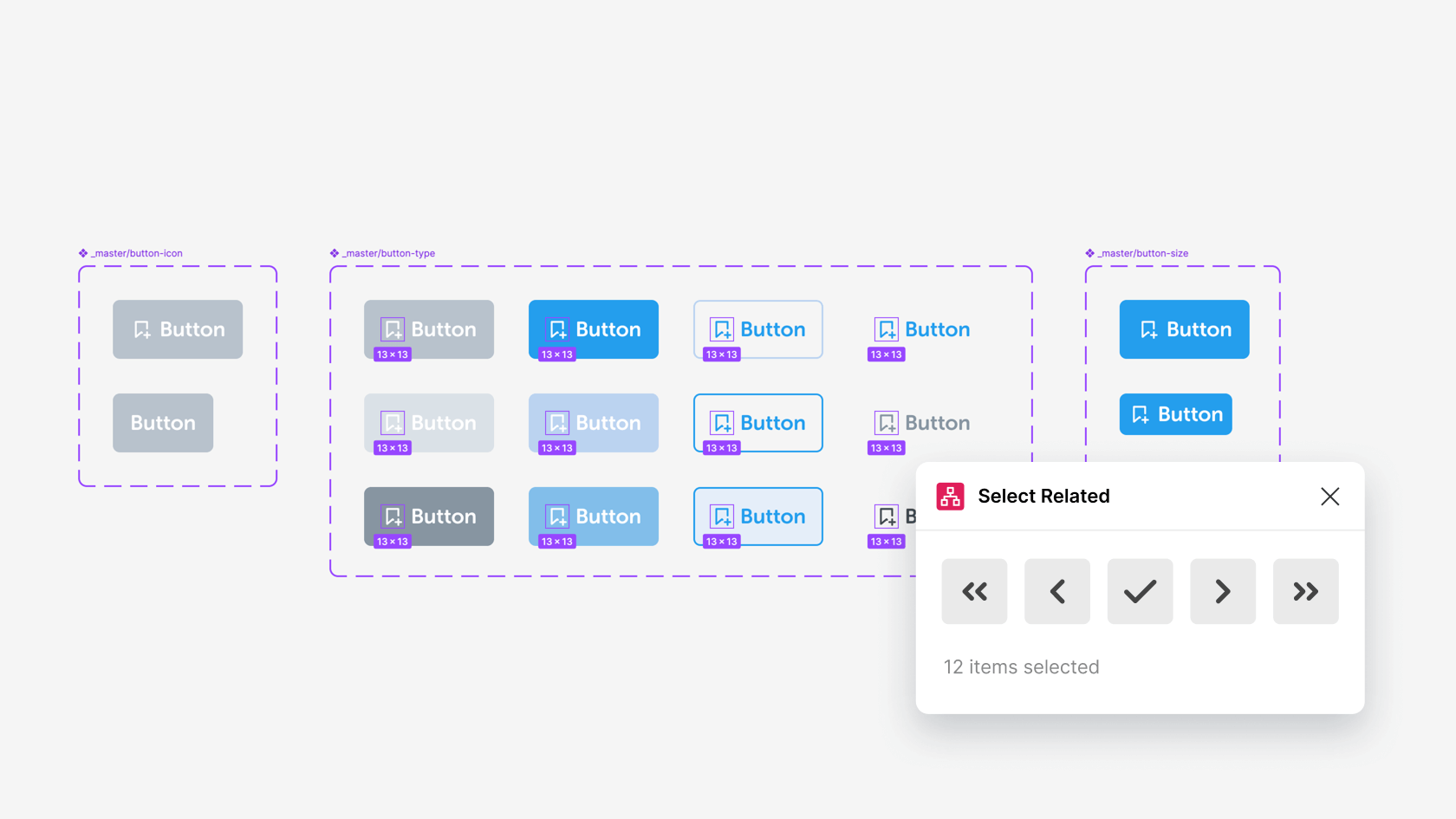 Figma Select Related is a plugin that helps you navigate complex component hierarchies by selecting related items (cousins) based on their relative position in the tree.